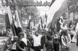 "Fan-Club Arminia Bielefeld" auf dem Aachener "Tivoli"